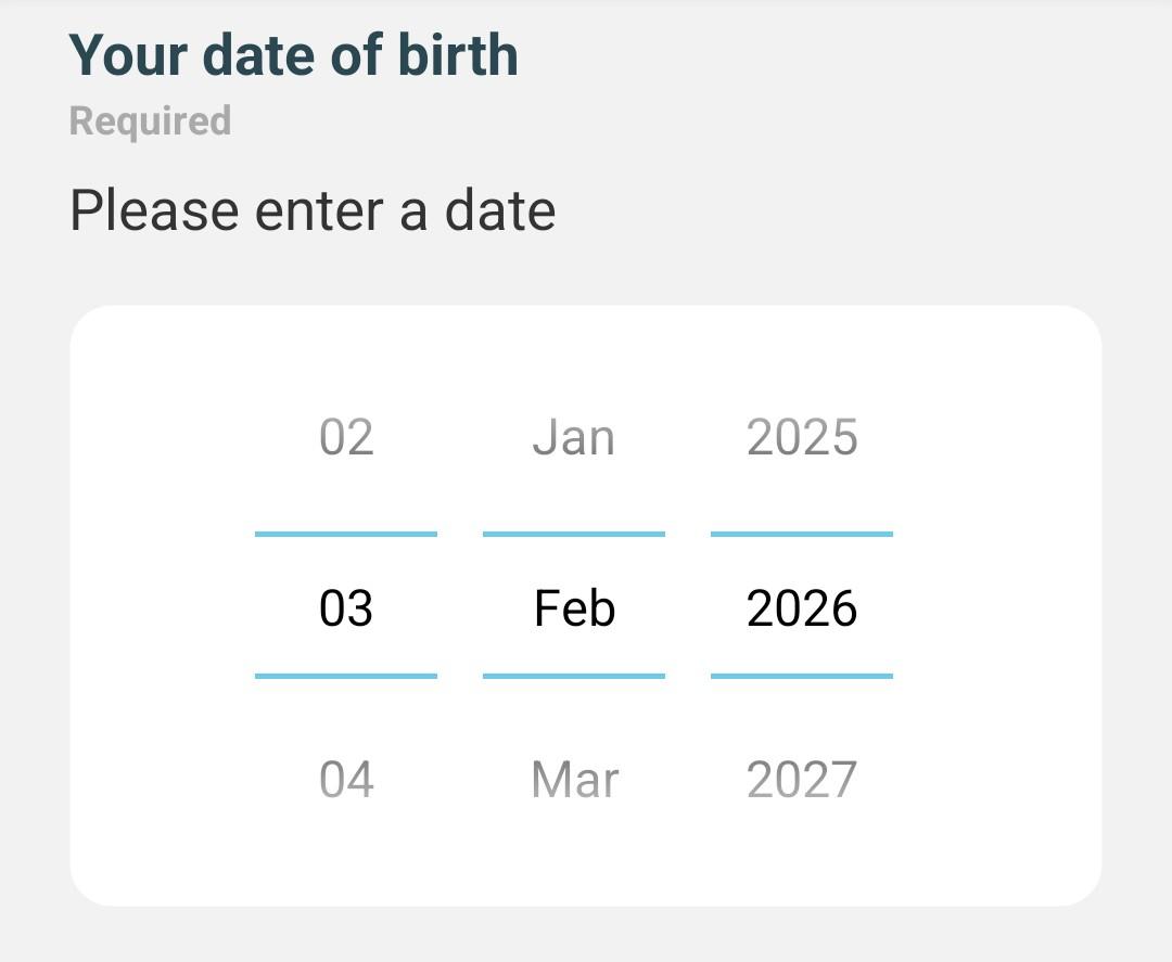 Date of birth pickers are a surprisingly nuanced UI problem. What do you pick as the initial value? How do you allow users to easily move by large amounts (years) as well as small amounts (the exact day)? Defaulting to today and even allowing future dates is funny though.