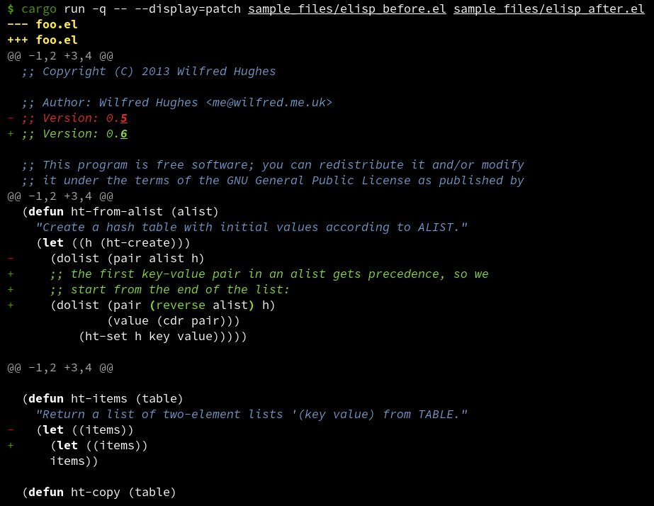 What do you think? Do the colours work? What about the last example, where there's only whitespace changes and the syntactic diff has nothing to highlight?
