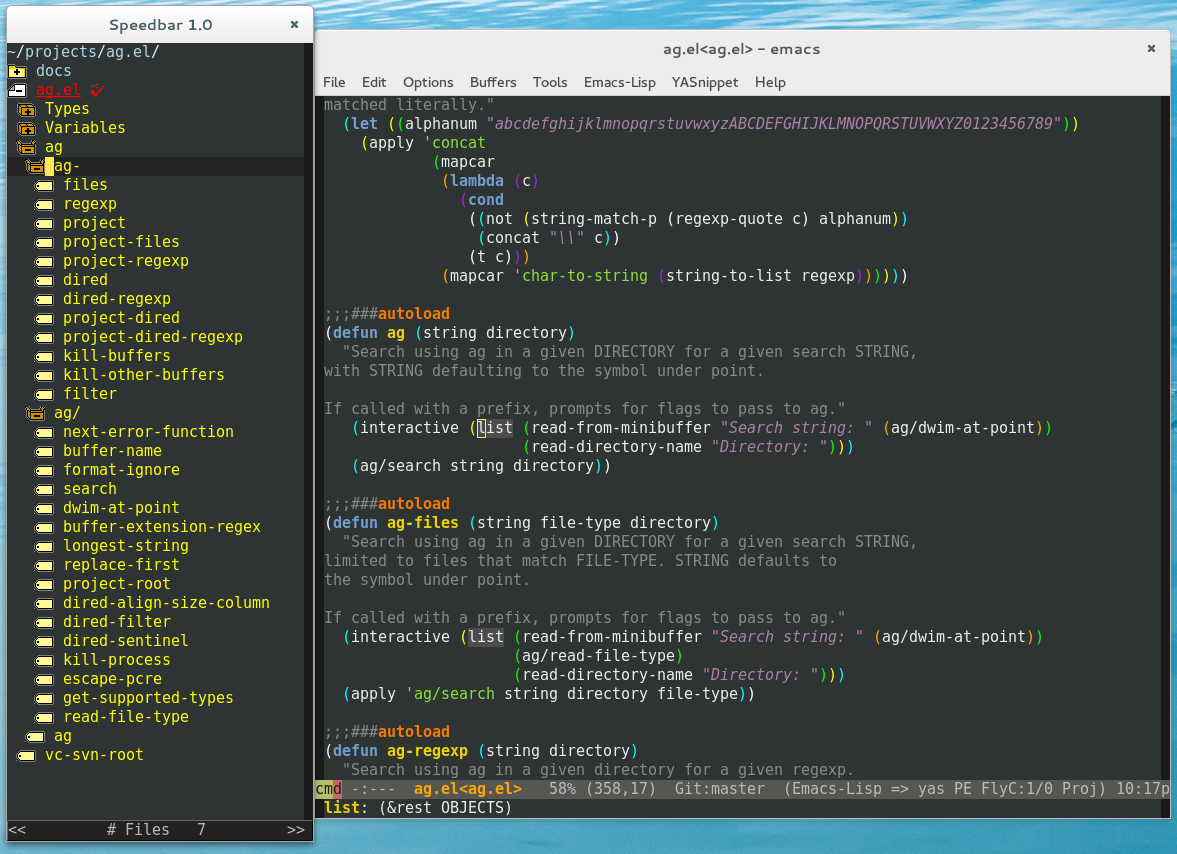 Emacs package of the day: speedbar. It's built in, and it even understands elisp 'namespace' conventions! http://t.co/pBX4BbhzZ8