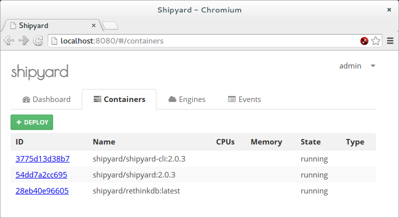 A few minor bumps in setup, but I now have Shipyard set up with Docker! Seems to work well. http://t.co/7NW6L9Z3mv