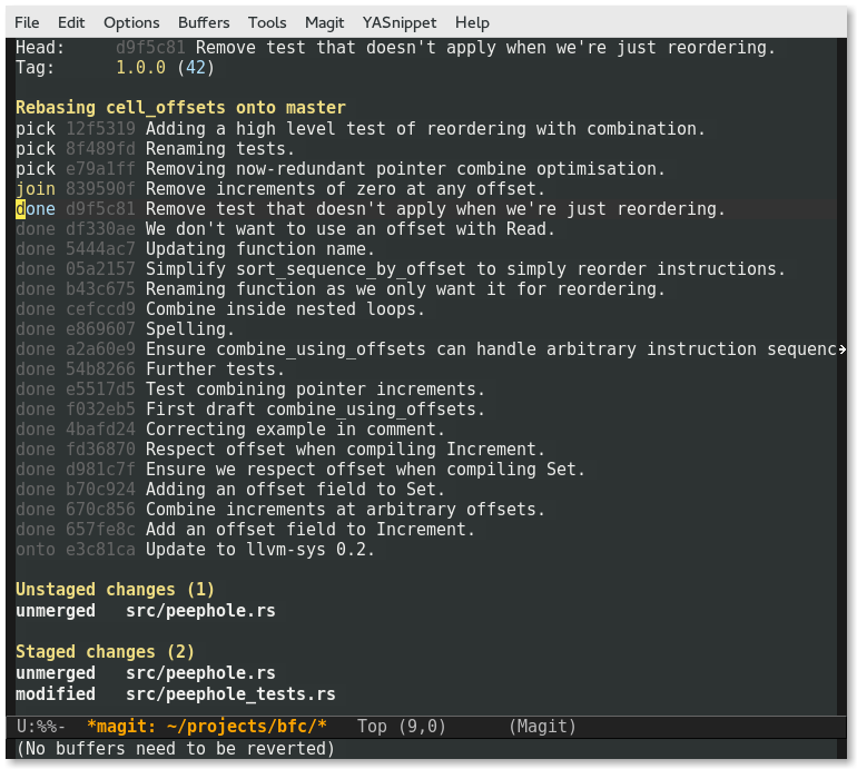 Another great @magit_emacs feature: when rebasing, you can see progress as you work through conflicting commits. http://t.co/5Zy2rCg8IF