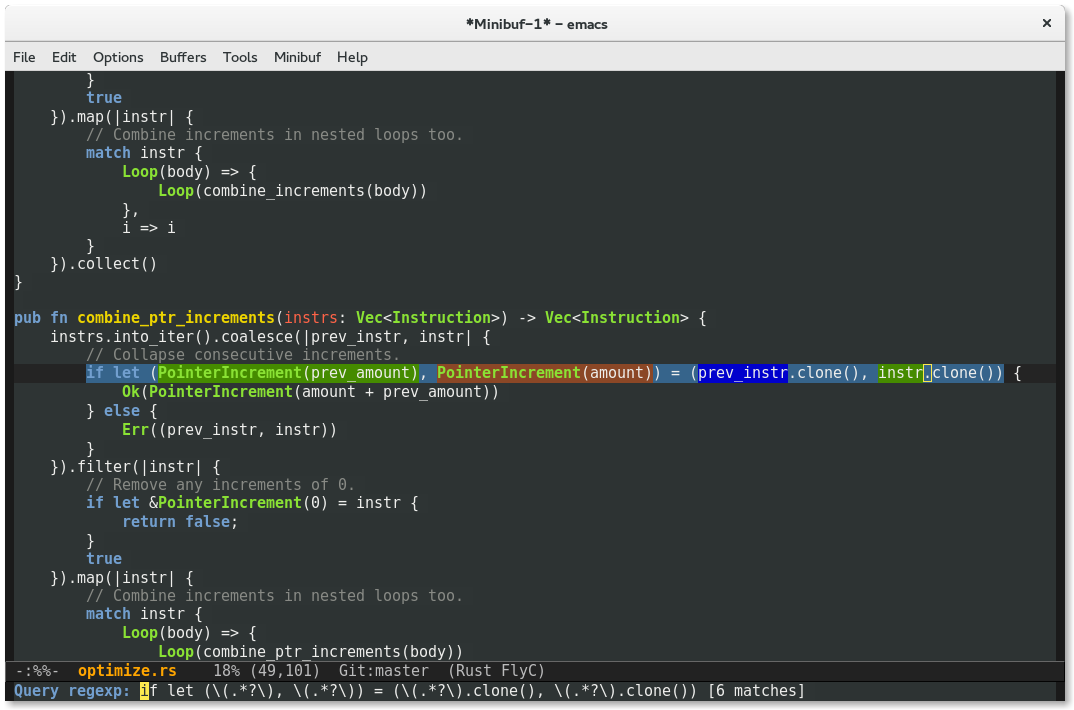 visual-regexp makes complex regexps painless in Emacs. https://github.com/benma/visual-regexp.el Here I'm doing a little refactoring. http://t.co/Jyqw3u8BNa