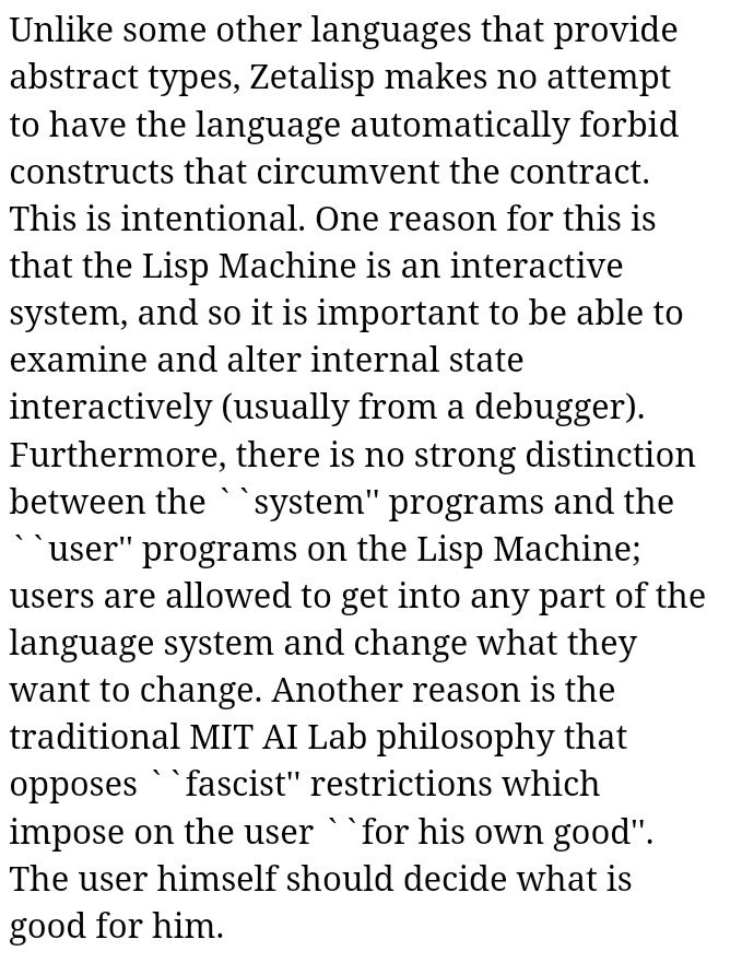 The MIT Lisp Machine manual argues in favour of allowing users to patch internal details of classes: