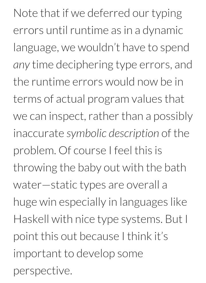 Dynamically types languages have the advantage of concrete values, so static languages *must* have helpful errors: