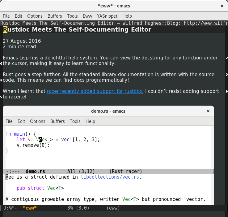 Emacs 25.1 is out! https://lists.gnu.org/archive/html/emacs-devel/2016-09/msg00451.html My favourites so far: better *Help* buffers, and a slew of python.el bugfixes