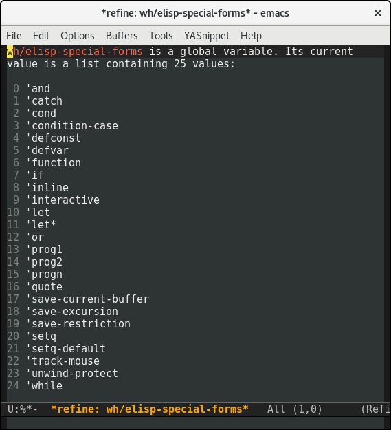 Emacs has 25 special forms! I was surprised about save-excursion (presumably perf?) and prog2 (could be a macro!).