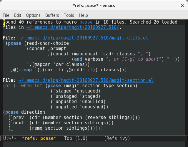 elisp-refs v1.2 is now smarter than ever! You can narrow searches, view *Help*, or search for the symbol at point.