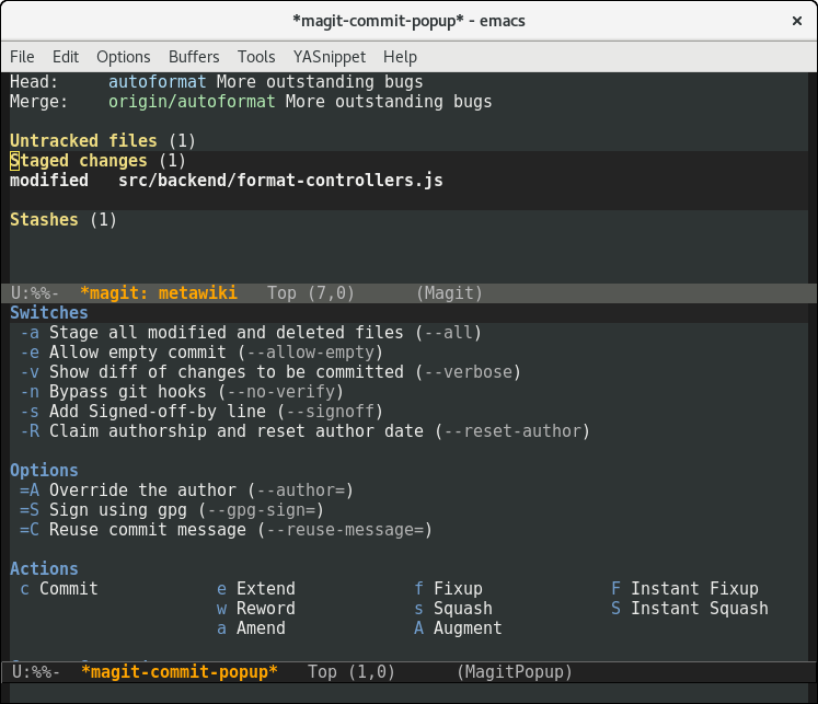 TIL that `c F' in magit allows you to add your changes to an arbitrary existing commit! 'Instant Fixup' is very useful for feature branches.