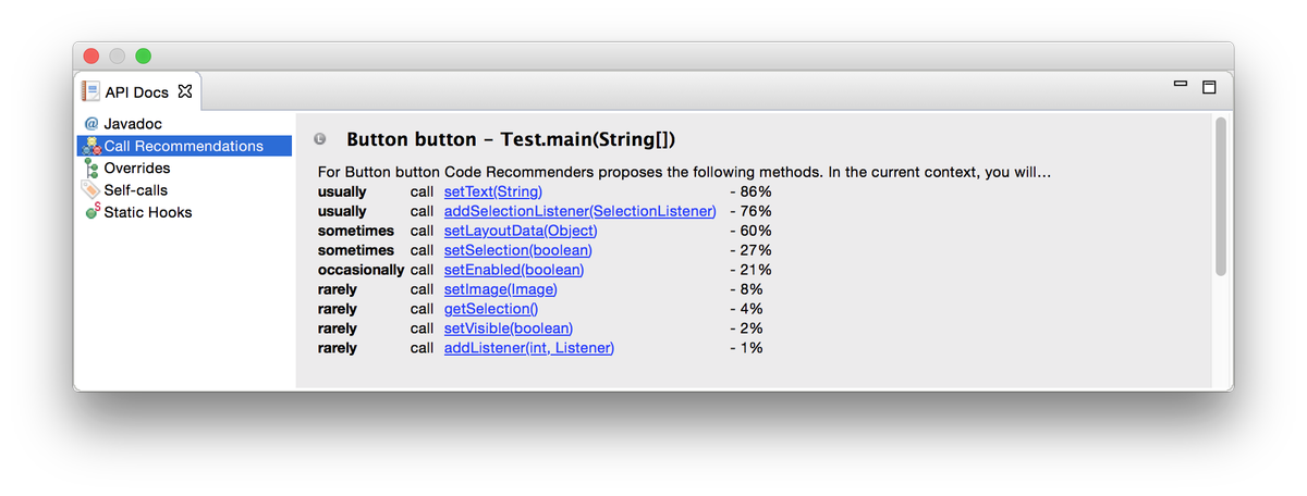 A wonderful code completion tool in Eclipse: suggest completions, sorting them by popularity in context!