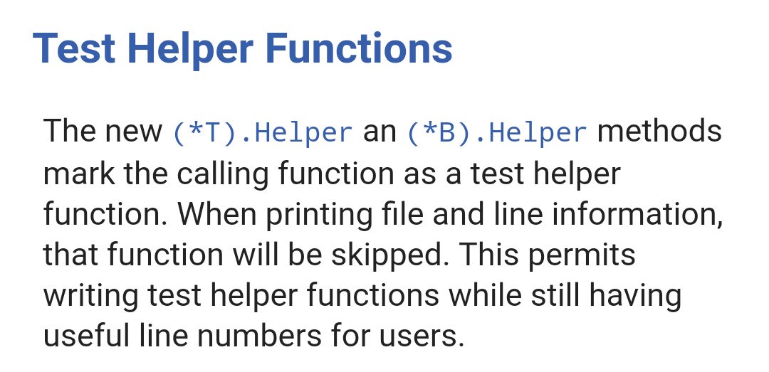 Go 1.9 will allow you to hide helper functions in tracebacks. Very helpful, but also risks hiding bugs. Tradeoffs!