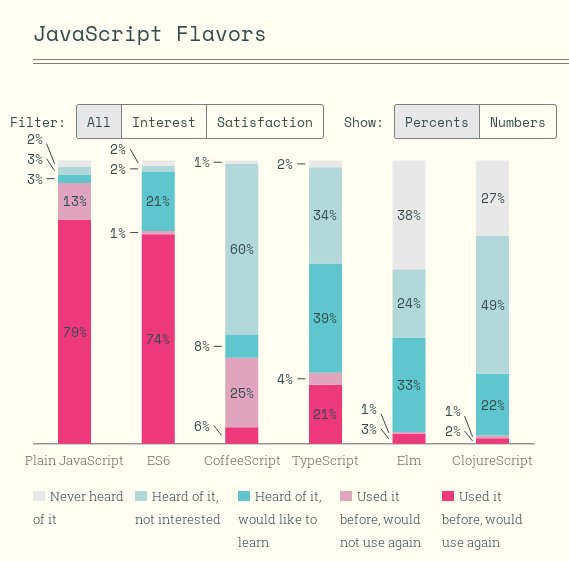 The State of JS blog posts have some great visualisations exploring dev attitudes to languages and tools: