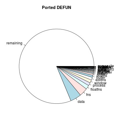 Wondering how many elisp primitive functions have been ported to Rust in Remacs? Here's a plot (from https://github.com/Wilfred/remacs/wiki/Progress).