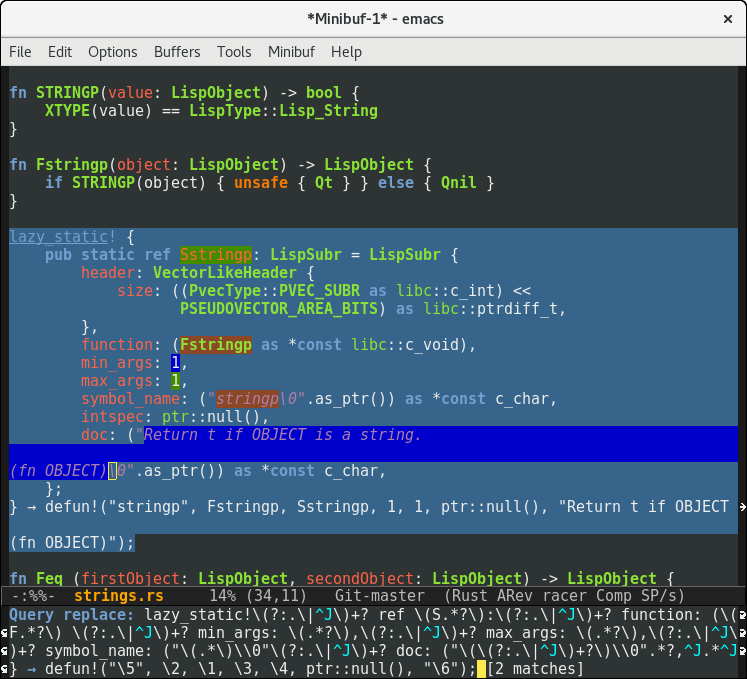 Announcing Remacs: Porting Emacs to Rust! https://www.wilfred.me.uk/blog/2017/01/11/announcing-remacs-porting-emacs-to-rust/