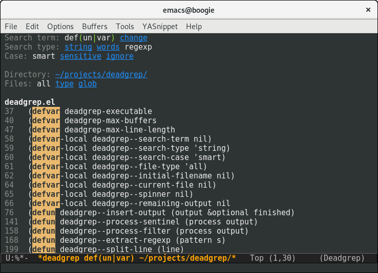 I've written an #emacs plugin for searching for text with ripgrep: https://github.com/Wilfred/deadgrep