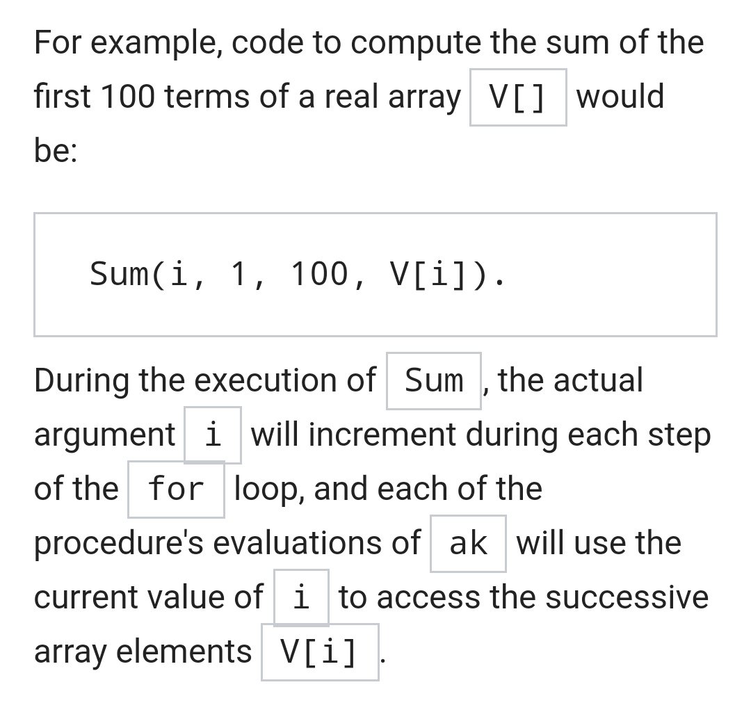 Jensen's Device is this fun (though slightly bananas) programming technique for call-by-name programming languages. Note how we're iterating over V[i] in this example!