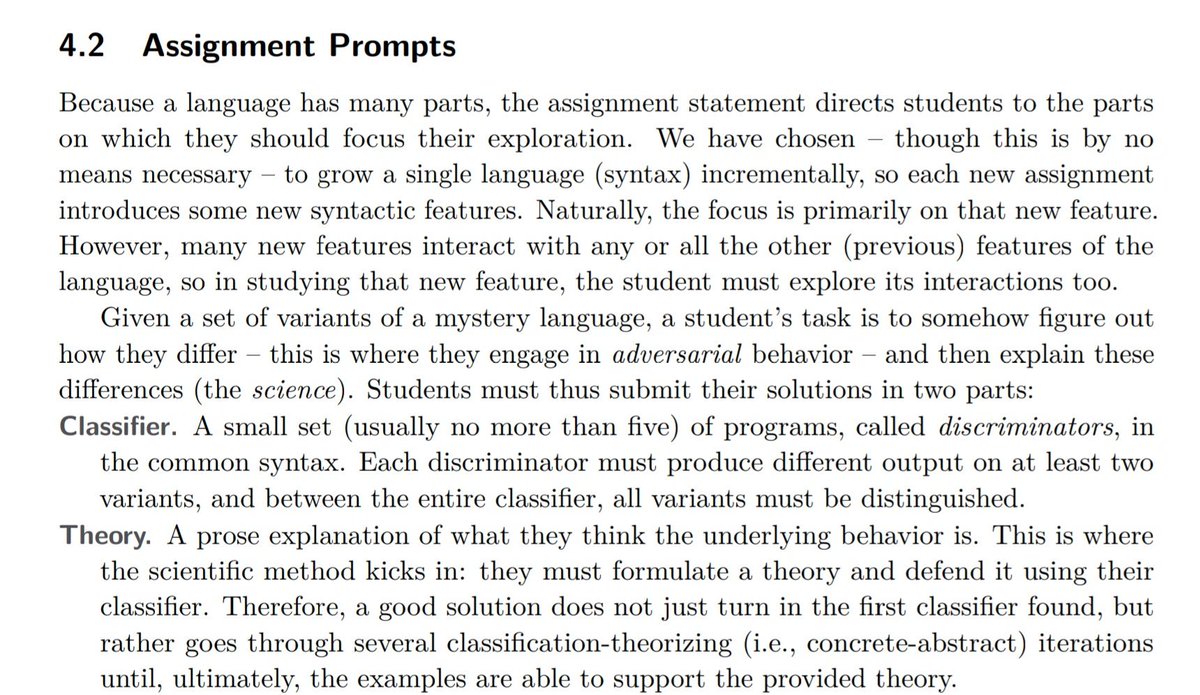 Teaching Programming Languages by Experimental and Adversarial Thinking: https://cs.brown.edu/~sk/Publications/Papers/Published/pkf-teach-pl-exp-adv-think/