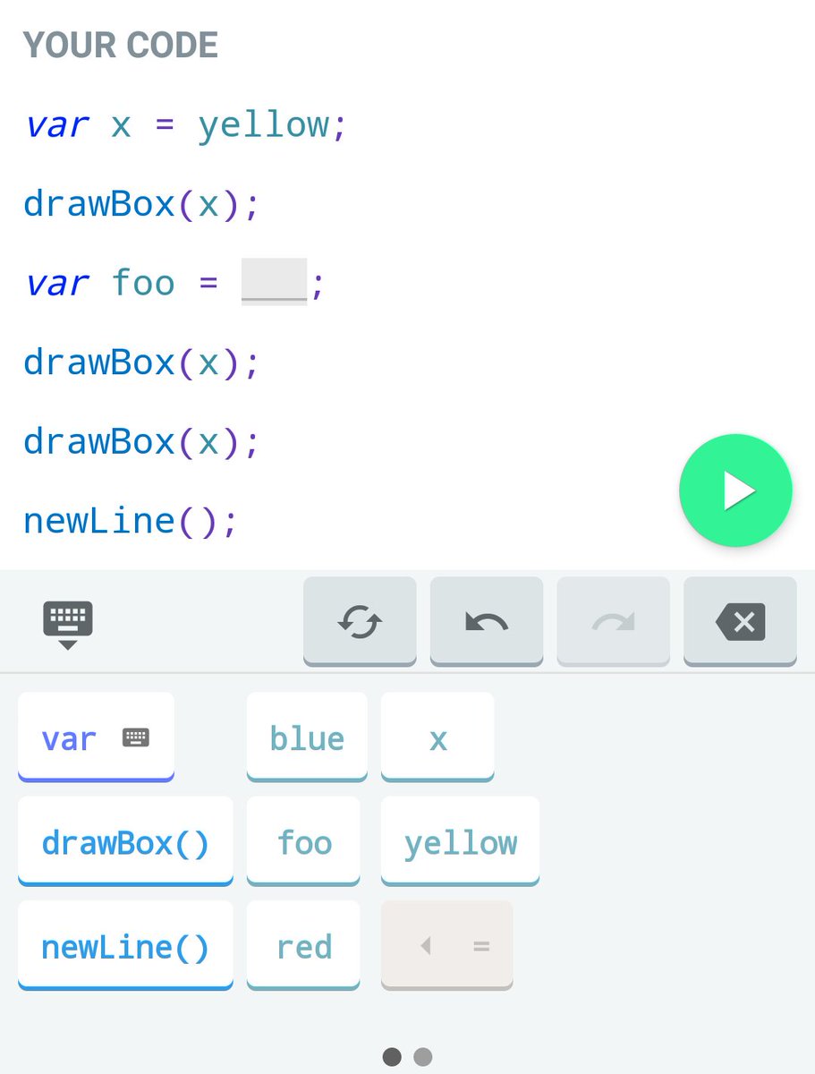 It combines elements of Logo (visual feedback) with a great little editor that works well on touch screens.