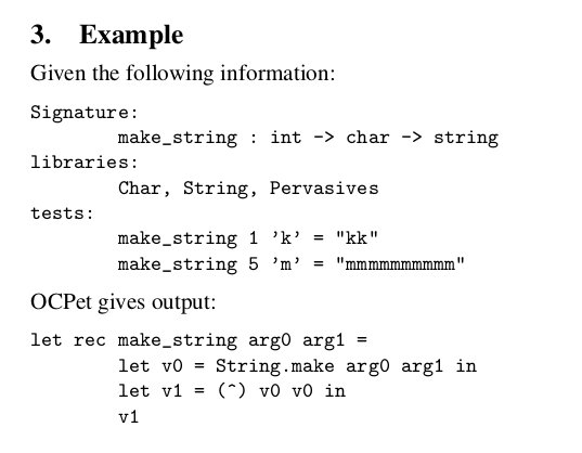 'Component-based Program Synthesis in OCaml' is a nice 2017 paper on program synthesis in OCaml. https://www-scf.usc.edu/~zhanpenl/prog_syn.pdf