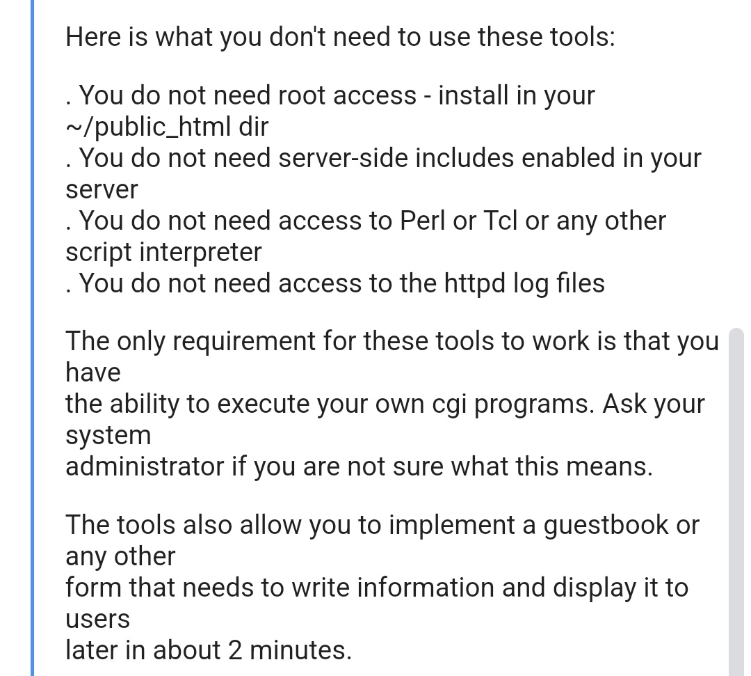 The PHP 1.0 announcement has aged pretty well! Rasmus focuses on simplicity, how little you need to get started, and the things you can build. This convenience and pragmatism has been a major factor in PHP's success.