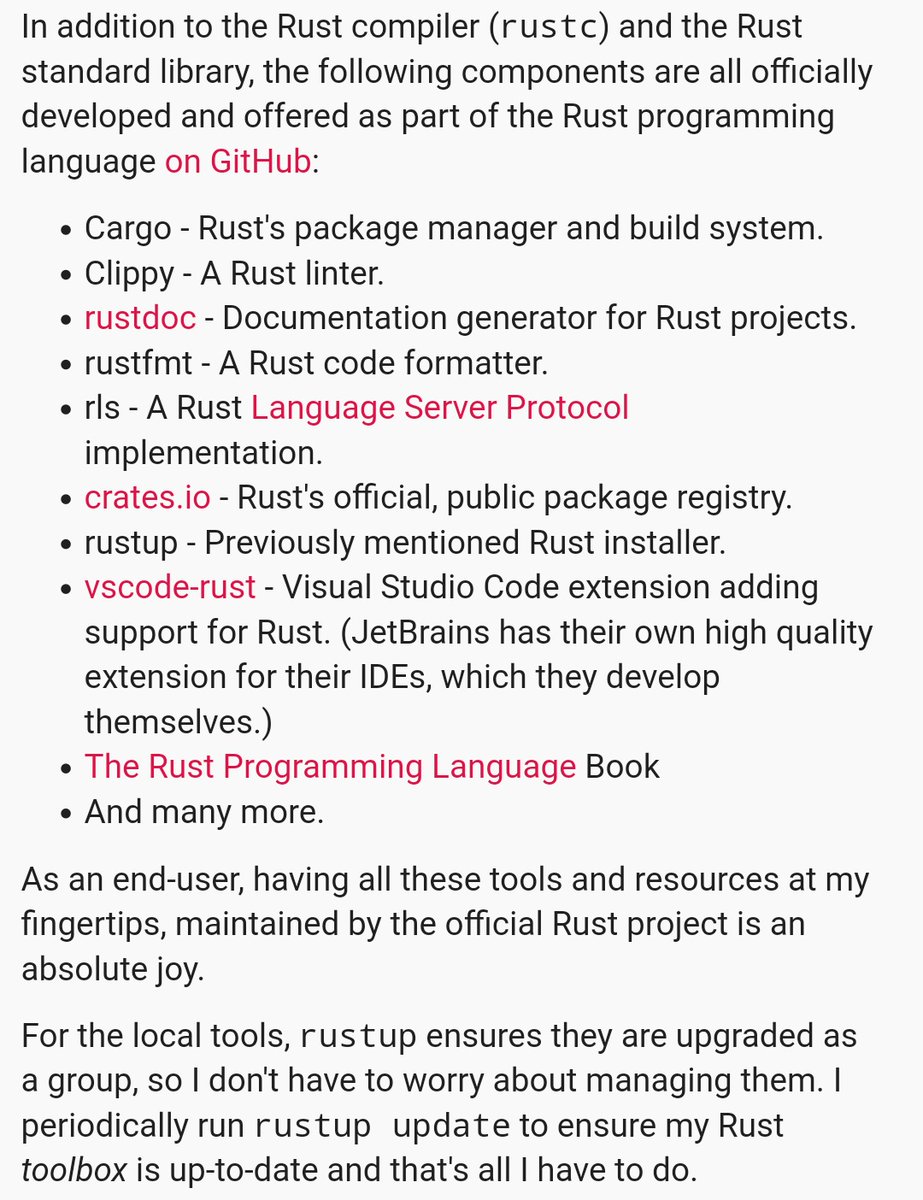 The number of tools a programming language is expected to provide is growing over time. This in-depth article describes what Rust provides: you can't just ship a compiler these days.