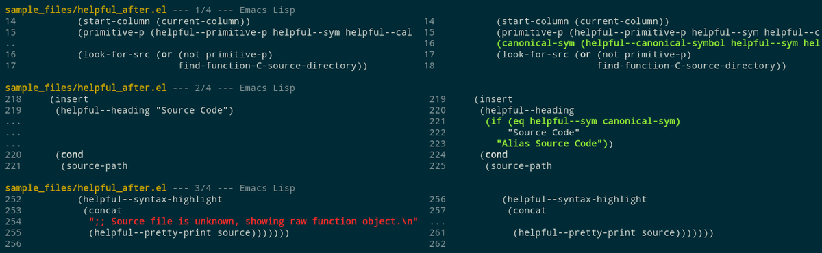 I've been rewriting how difftastic calculates hunks, and it's beginning to look good!