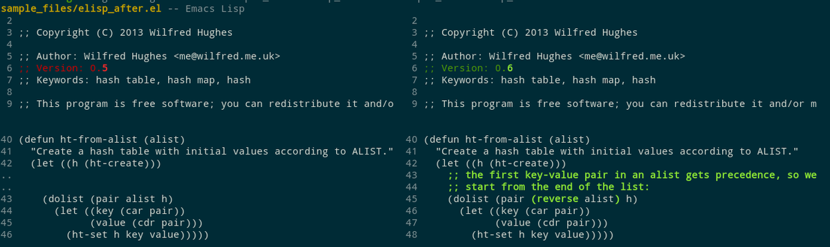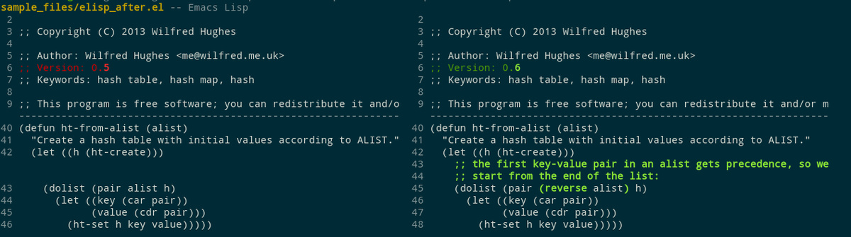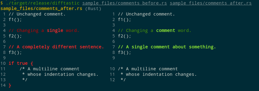 Comment diffing is now much smarter, output alignment is way improved, several major crashes have been fixed, and I've even added Go support :)