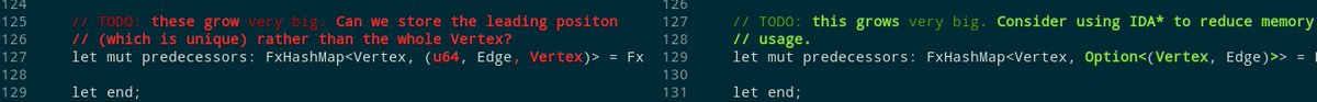 Spent some time today trying to replace difftastic's implementation of Dijkstra's algorithm with A* search.