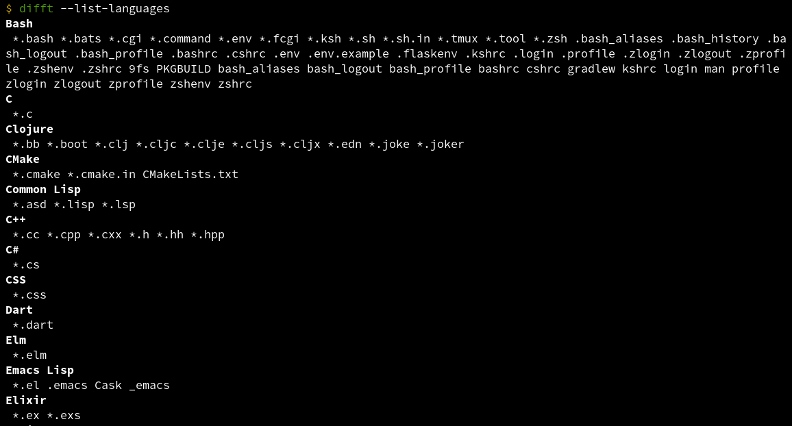 * Added `--check-only` and `--exit-code`, making difftastic useful in shell scripts