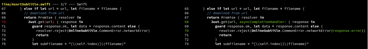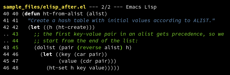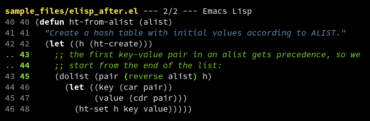 I'm experimenting with line number styling in difftastic. The first screenshot is the old version, and the second screenshot shows the new.