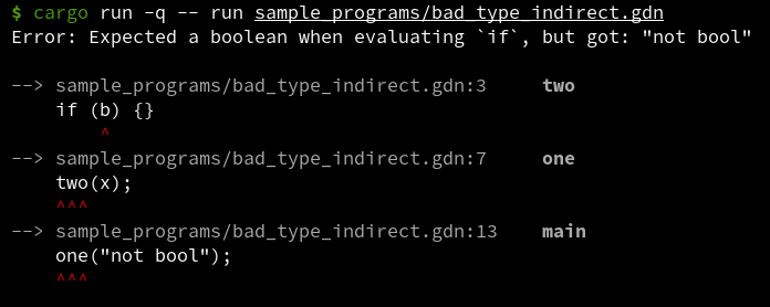 I've written a simplistic backtrace for runtime errors in my toy programming language.
