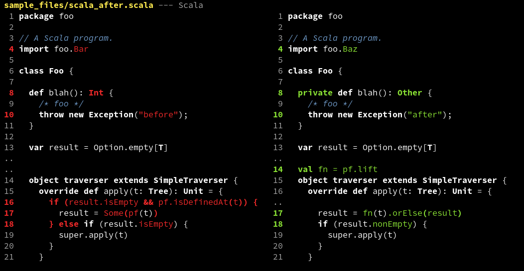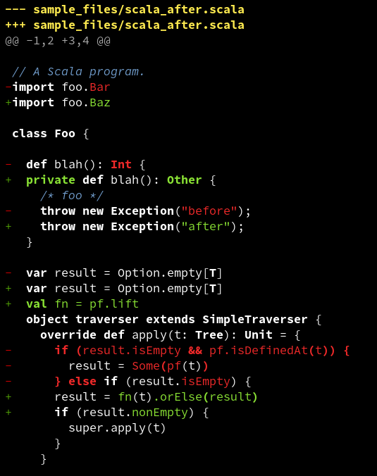 I'm experimenting with a patch-style display format for difftastic.